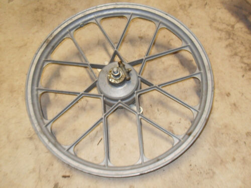 This 16" Front Rim with Brake Plate and CEV Speedometer Drive is off a 1980 Gadabout Moped with Minarelli Engine. The rims spins true, but the paint is bubbling in a couple places as shown and could use a fresh paint job. Please see the pictures below and contact me with any questions.